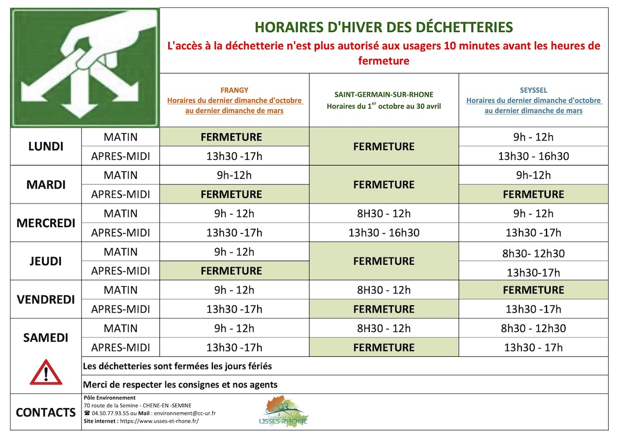 Horaires d'hiver déchetteries